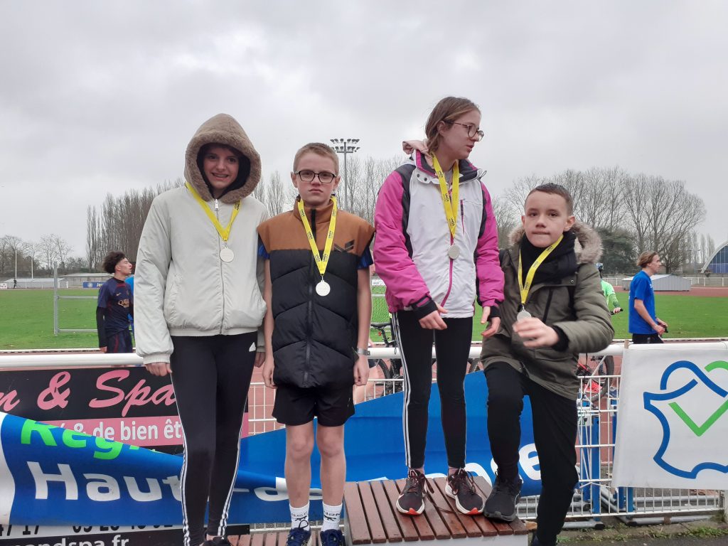 Nos quatre Ă©quipes Sport PartagĂ© ont reprĂ©sentĂ© lâIME de Fruges et le collĂšge dâHeuchin lors du cross dĂ©partemental UNSS Ă LiĂ©vin.